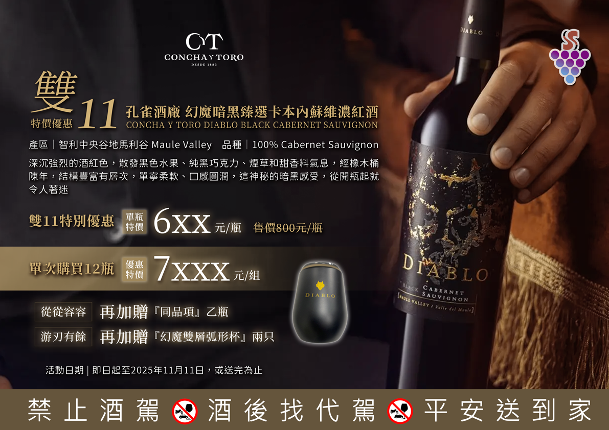隆重獻上【幻魔暗黑臻選卡本內紅酒】雙11特別優惠