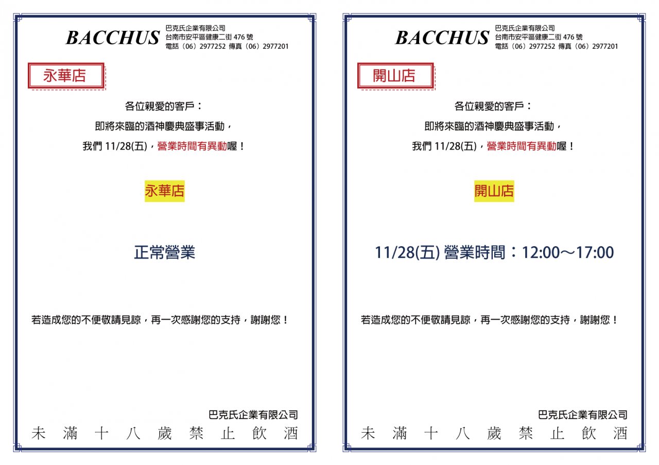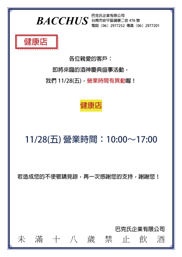 2025⎚酒神慶典┇營業時間異動公告