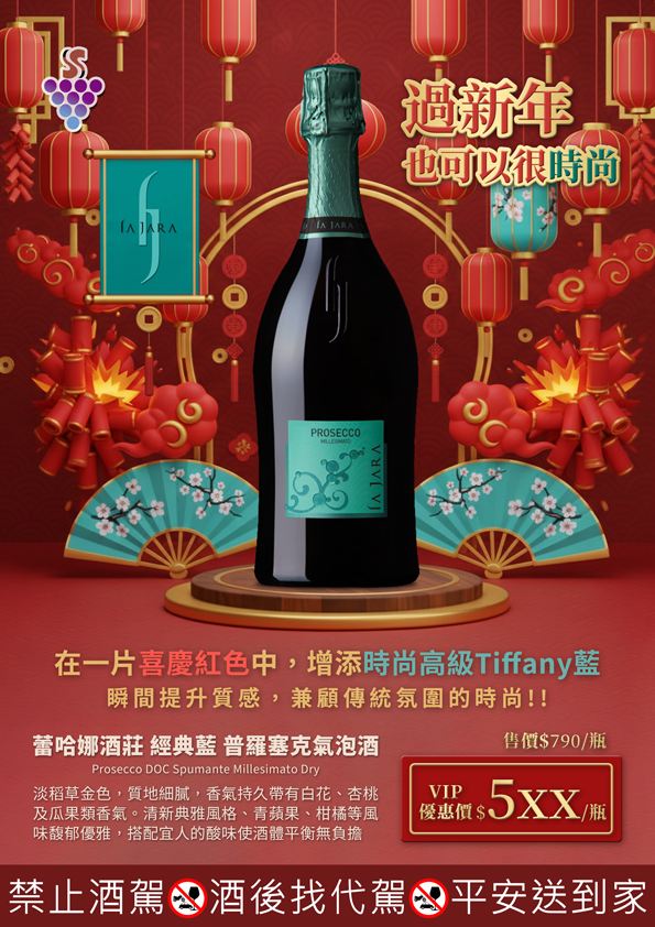 以味道清新、香氣奔放又易飲而超受歡迎的【Prosecco 普羅塞克氣泡酒】,最適合新年來上一瓶,跟親朋好友分享經典的美味!
