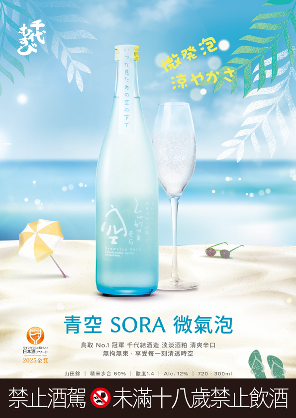 來自鳥取NO.1冠軍『千代結酒造』,淡淡酒粕、清爽略帶辛口,無拘無束,適合初春午後的悠閒時光
