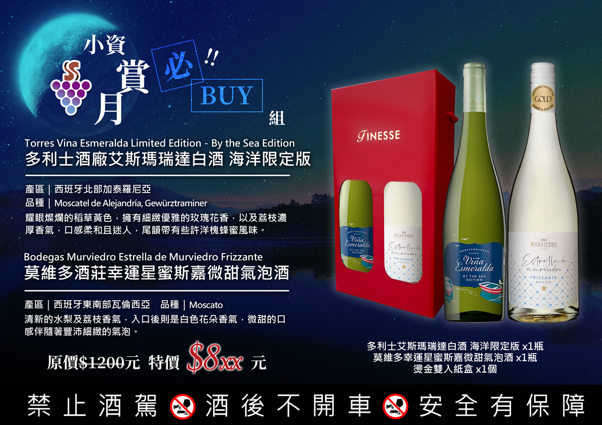 可以參考這款中秋特惠組【艾斯瑪瑞達白酒】+【幸運星微甜氣泡酒】