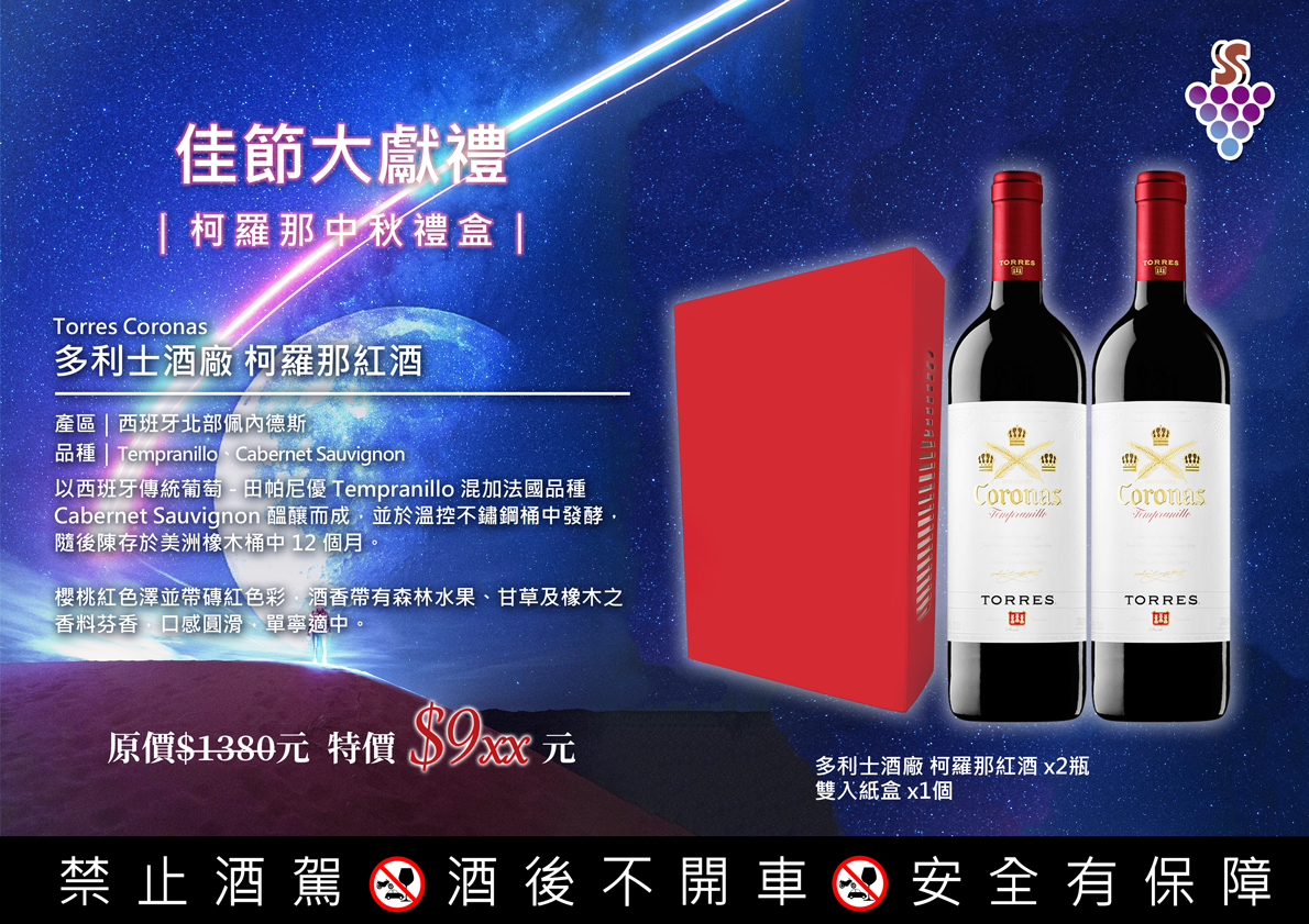 以西班牙傳統葡萄 Tempranillo,混加法國品種 Cabernet Sauvignon,釀製而成的【柯羅那紅酒】