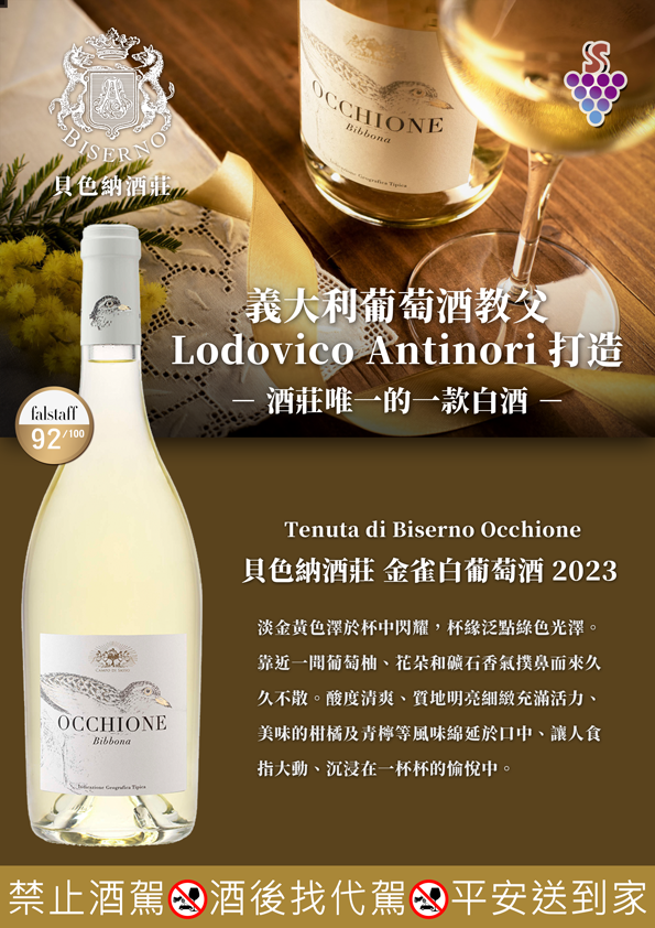 貝色納酒莊唯一的一款白酒Tenuta di Biserno Occhione