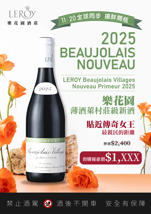 來自神級名莊,有著『薄酒萊新酒代名詞』的美譽,最親民的距離,搶先給你貼近傳奇女王的機會