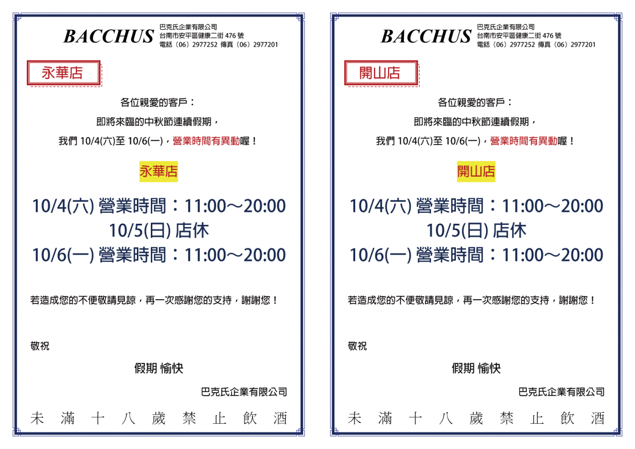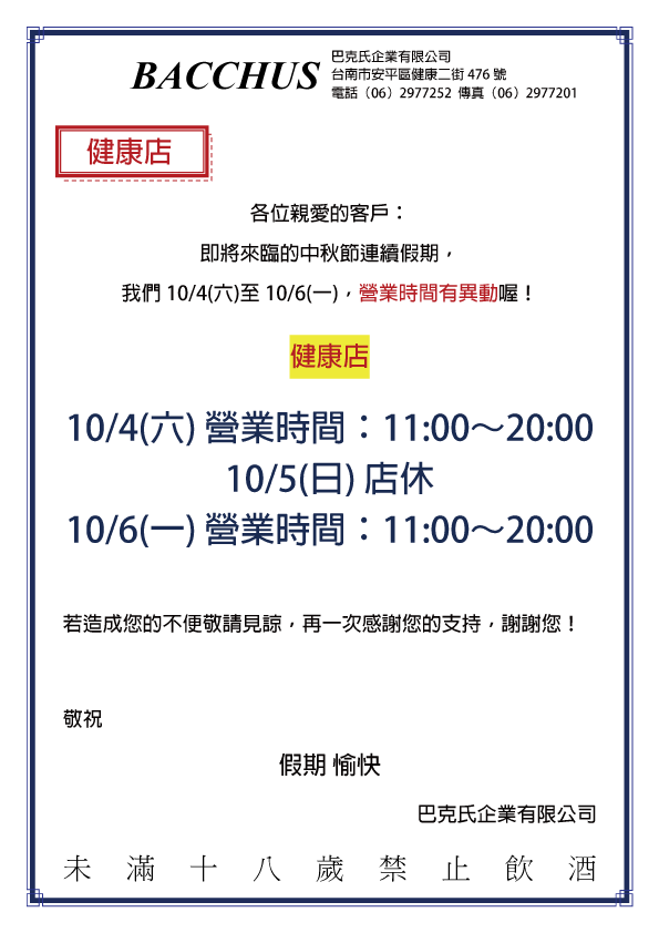 2025⎚中秋節┇營業時間異動公告